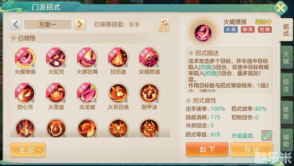效果:群体法术攻击,对多个目标造成法术伤害,并概率附加灼烧状态。