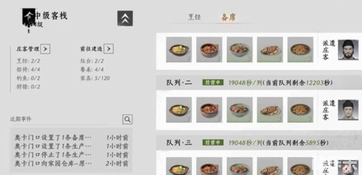 注意:一定要保持在线挂机,不然你的烹饪备席生产进度会停滞