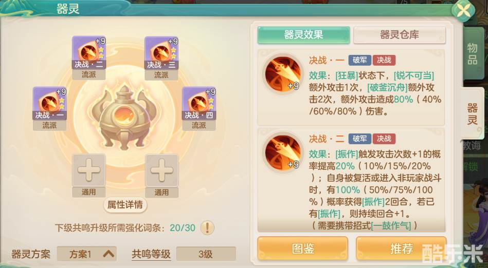 梦想世界器灵-决战,属于枪战门派专属器灵,能够使枪战更有效的进入狂暴状态,并强化枪战在狂暴状态下的战斗能力。使用该器灵,一往无前,以舍弃防御的代价换来巨幅的输出提升,与敌决战,视死如归。下面和酷乐米小编一起来看看吧
