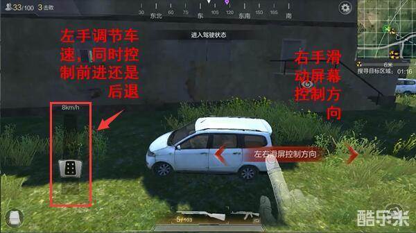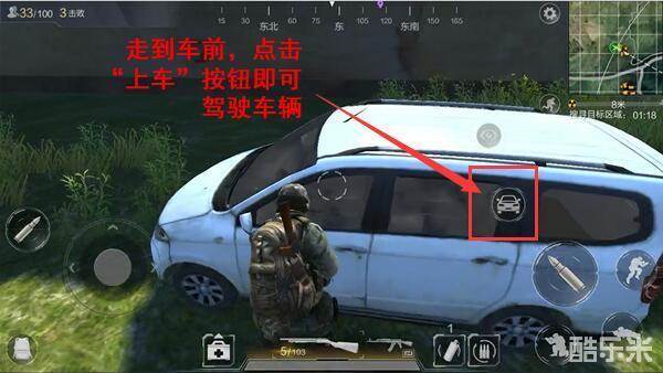 车辆驾驶:游戏前期尽量驾驶车辆前进,车辆一般在道路附近,找到车后直接到车身边,点击屏幕右方的“驾驶”键就能上车驾驶了。