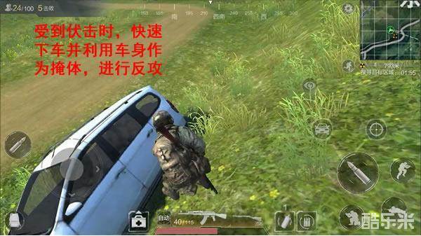 游戏进入后期尽量不驾驶车辆,因为在狭小的圈子内,车辆体积较为庞大,极容易成为敌人火力集结的对象,虽然不驾驶车辆,但车辆也可以发挥格挡的功能,在缺乏掩体的平原中尤为重要。