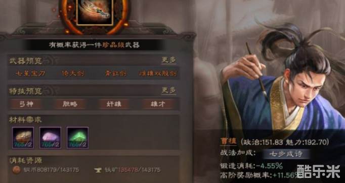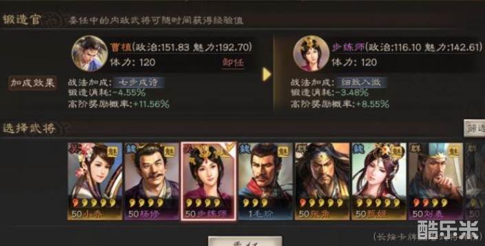 锻造系统需要消耗铁矿、铜币和特定材料,其中高级材料主要通过讨伐8级以上贼寇获取,图纸则依赖寻访或击败高级野怪掉落。委任锻造官能显著提升锻造效率,曹植的七步成诗战法可增加9%高阶装备产出概率,步练师则能降低2%资源消耗,小乔、甄姬等高魅力武将也是优质选择。政治属性影响资源节约效果,魅力属性则与高品质装备产出率直接相关。