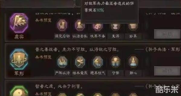 曹操的兵书选择同样重要,攻其不备、守势和防备是最通用的搭配,能进一步降低受到的伤害。如果主打反击流,避其锐气和三里而还的兵书组合能增强生存能力。对于满红玩家,全统率加点能让曹操的防御更上一层楼,而平民玩家可以选择智力和统率对半加,平衡输出和坦度。需曹操作为主将时,副将的输出会为他恢复兵力,因此尽量搭配高伤害武将。