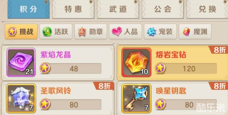首先就是熔岩宝钻,挑战积分每周可以换五个,共需要600积分,积分的主要来源是回廊和星月战场,想拿满宝钻每周的份额,三场星月都得打满,每场拿满击杀和协助积分。