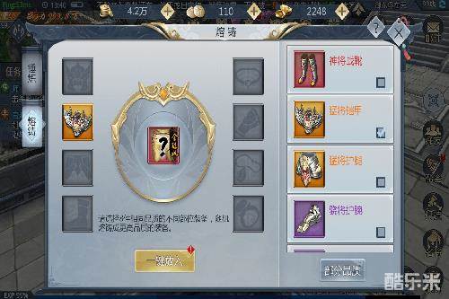 1、放入同品质的三件装备(不限定必须部位不同),通过装备锤炼即可随机得到一件同品质装备,并有几率得到该品质的套装装备。