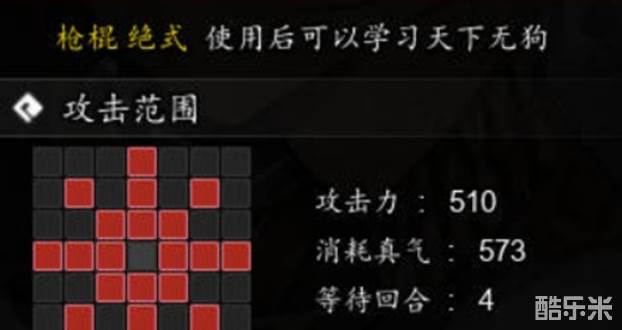 打狗棍法的核心招式"天下无狗"拥有510点基础伤害,攻击范围达到惊人的21格,虽然需要消耗573点真气并有4回合冷却时间,但其强大的输出能力完全值得这些消耗。更关键的是,这个招式还能给目标附加1-2层破招状态,每层都能降低敌人防御,最多可叠加5层,在面对高防御敌人时效果尤为显著。