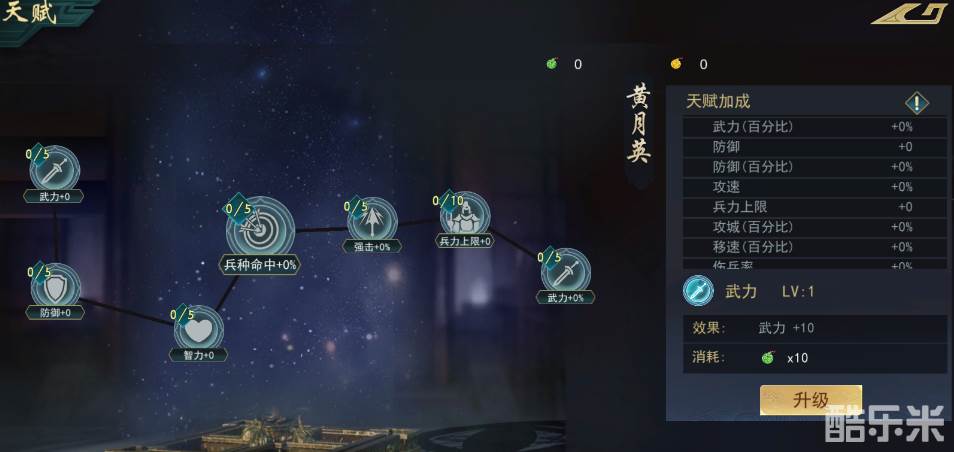 在发展度达到2500时,可以开启武将天赋功能,武将天赋是单独武将的系统,提升天赋带来的收益主要是百分比属性和带兵数量的提升,可以给武将有非常巨大的提升的养成;下面和酷乐米小编一起来看看吧
