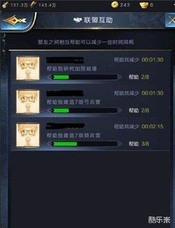 说到联盟玩法我们就要提到一下联盟互助,加入联盟后,只要我们修建了使馆,那么我们在建造建筑和研究科技的时候就可以得到联盟同伴的帮助,能够减少建筑时间和研究时间。让我们能更快的完成。当然,玩家本人也需要帮助其他联盟的成员进行发展,团结互助才能成长的更快哟。