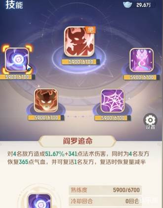 阎罗追命:属于一个群攻类型的技能,主要的亮点是可以有效复活队友。在团队战争时,如果战局逐渐进入到僵硬化,那此时就可以迅速的弥补团队战斗的缺口。可以在短时间内扭转战局。