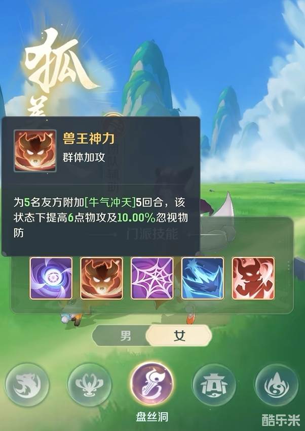 盘丝洞有着非常明确的职业定位,它所拥有的五个技能中,除了第一个技能可以打输出外,其它四个技能都以辅助队友为主。其中,二技能为加攻,三技能加防,四技能加速,五技能则能让选定的队友得到魔尊附体的效果,以获得命中提升和伤害提升的加成,是不折不扣的团队型辅助。