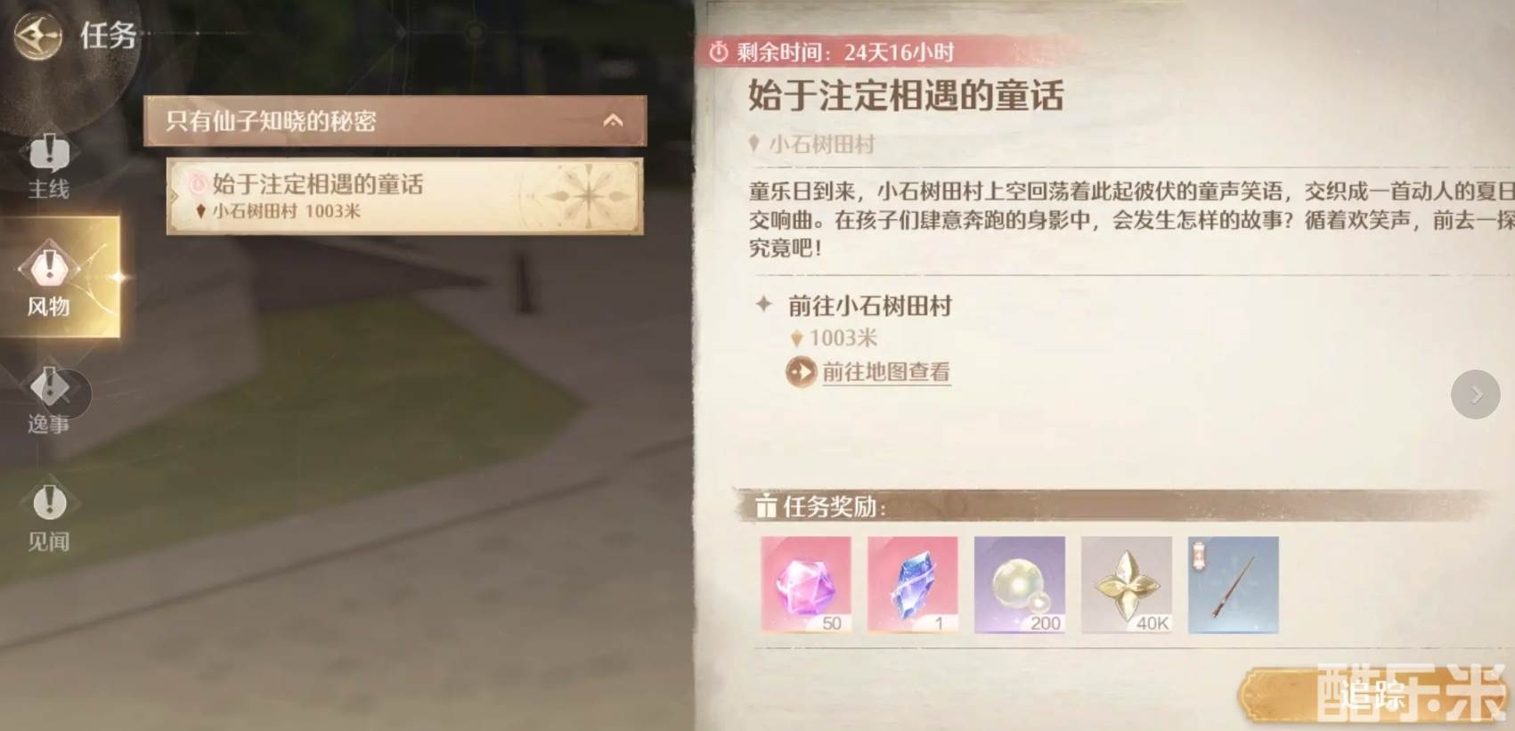 无限暖暖在1.6版本更新后进入天真季,玩家可以参与名为“只有仙子知晓的秘密”的风物任务,踏上一段梦幻且欢乐的探索旅程,其中只有仙子知晓的秘密-始于注定相遇的童话怎么做?下面和酷乐米小编一起来看看吧