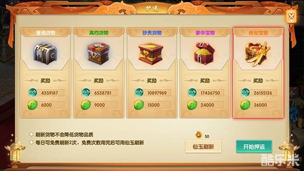 每日可免费刷新2次,免费次数用完后可用仙玉刷新