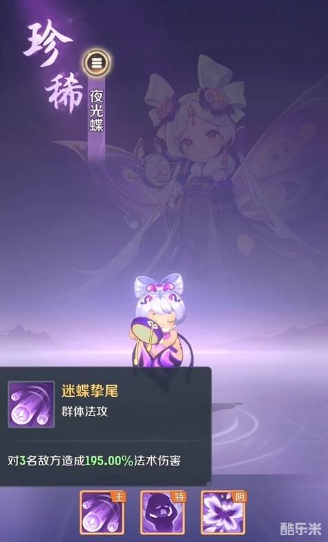 进化成幽梦芳灵后,该宠物各方面的数值都会有所提升,但技能的效果不会改变,与夜光蝶时期依旧保持着一致。其初始的三个技能中,一技能可对3名敌人造成法术伤害,二技能则可在攻击目标的同时,对敌人施加一定的混乱效果,持续时间足有3个回合,是不错的控制技能。而它的被动则可为自身带来控制抗性的提升。