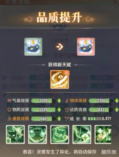 最后到了第三阶段之后会进而进化成白金王兽,白金王兽的头角会出现金色的液体附着。整体的体型会增大,并且并没有像其他宠物一样进入拟人时代还是兽者形态。在游戏中的宠物都是要进行养成。基本上除却珍稀的宠物一般都能在方寸山步捉到幼年形态。
