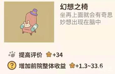 幻想之椅是动物餐厅前院的装饰设施,购买的位置在:前院左下角的设施中,前院-装饰一栏里购买。