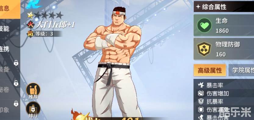 这个连携,其效果有两项,第一是可以给大门五郎本身增加暴击抵抗率,第二就是给连携内的散人提供生命值百分比的护盾。