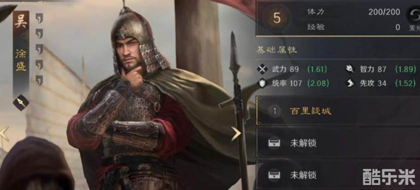 徐盛在三国谋定天下中定位为防御型武将,拥有107点的高统帅值。他的主动技能"百里疑城"在战斗前4回合内,能为全体友军提供12.5%-25%概率的抵御效果,这个概率会随着统率属性提升而增加。第四回合开始时,徐盛自身统率将提升20-40点,同时给敌方全体施加持续2回合的洪水状态。下面和酷乐米小编一起来看看吧