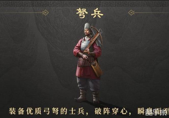 游戏中共有四大基础兵种:盾兵、骑兵、枪兵和弓兵。在S2赛季更新后,每个基础兵种都可以晋升为两个进阶兵种,分别是剑盾兵、重盾兵、轻骑兵、重骑兵、长枪兵、长矛兵、长弓兵和弩兵。