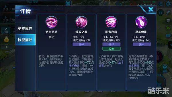 小乔是一名被许多女玩家喜爱的法师英雄,不论是前期的消耗能力还是后期团战,掌握了灵活用法,将会是一名十分强势的英雄。