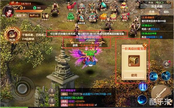 任务介绍:使用封魔录可接取封魔任务,每日前两次任务可获得高级封魔宝箱!
