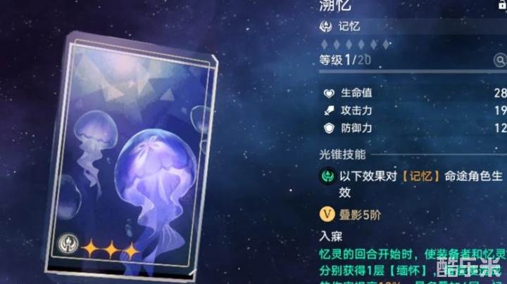 数值能被百分比转化,比如角色本身的百分之九十速度。而布洛妮娅以及藿藿提供的速度百分比,也能被光锥进行转化。除了基础速度外,它的第二个亮点在于忆灵上。当忆灵攻击到敌怪后,装备者能得到一层织锦增益。每层能提升本体以及忆灵的暴伤,一共能叠六层。等织锦叠到上限后,每层还能额外提升平A伤害。