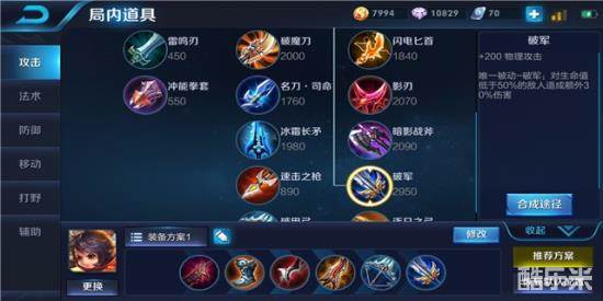 第六件装备推荐破军。破军可以增加高额的攻击,配合上破军的被动,可以对血量少的英雄造成更高的伤害,这大大增强了元芳的输出,在队友的保护下,元芳俨然就是一个巨大的输出机器。