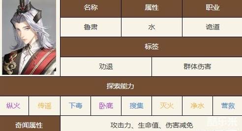 如鸢鲁肃技能怎么样,鲁肃普通攻击对目标造成100%攻击力的伤害,技能将对敌方全体造成105%/110%/115%攻击力的伤害,并有20%机率直接劝退敌人,若敌人的生命值低于30%,劝退机率翻倍。下面和酷乐米小编一起来看看吧