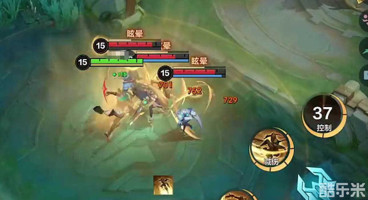 一技能沙漠飓风,可以使卡里德手中的沙刃旋转,并且向前方造成范围型的伤害,同时,将被伤害命中的敌人,拖拽至自己身前,该输出能够造成三段伤害,此技能对非敌人英雄单位,伤害会减少一半。