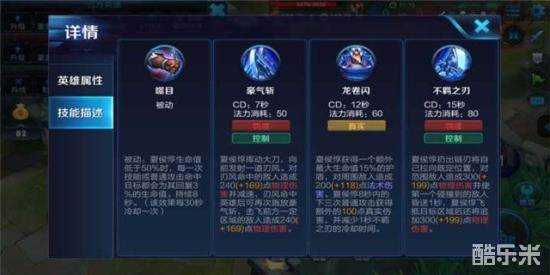 技能解析:夏侯惇获得一个额外最大生命值的护盾,对周围敌人造成法术伤害。夏侯惇8秒内的下三次普通攻击获得额外的真实伤害,并减少一技能的冷却,夏侯惇的二技能,在残血时候配合被动,能够进行残血反杀,二技能释放时候还会造成伤害,保证了自己的生存。
