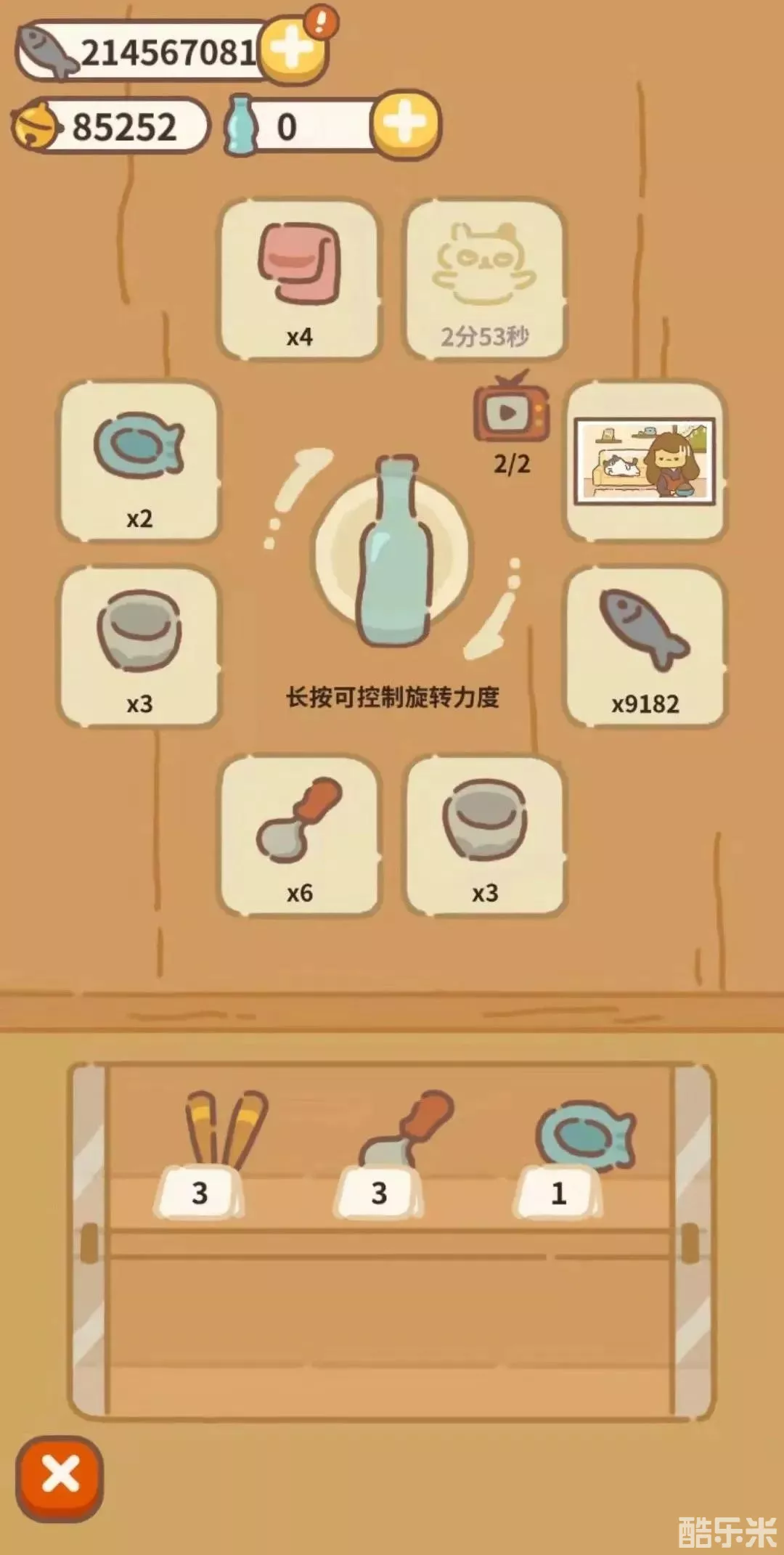 长按瓶子可以蓄力,瓶子里面会有黄色的液体进度条,随着长按的时间增加而增加,长按时间越久蓄力越多,瓶子转动的圈数越多