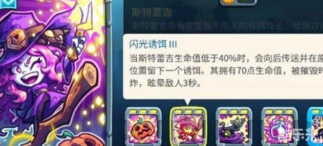 闪光诱饵是斯特蕾吉的保命技能。当生命值低于40%时自动触发,在原地留下一个拥有70点生命值的诱饵,同时角色会传送到安全位置。诱饵被摧毁时会产生范围爆炸,使周围敌人眩晕3秒。