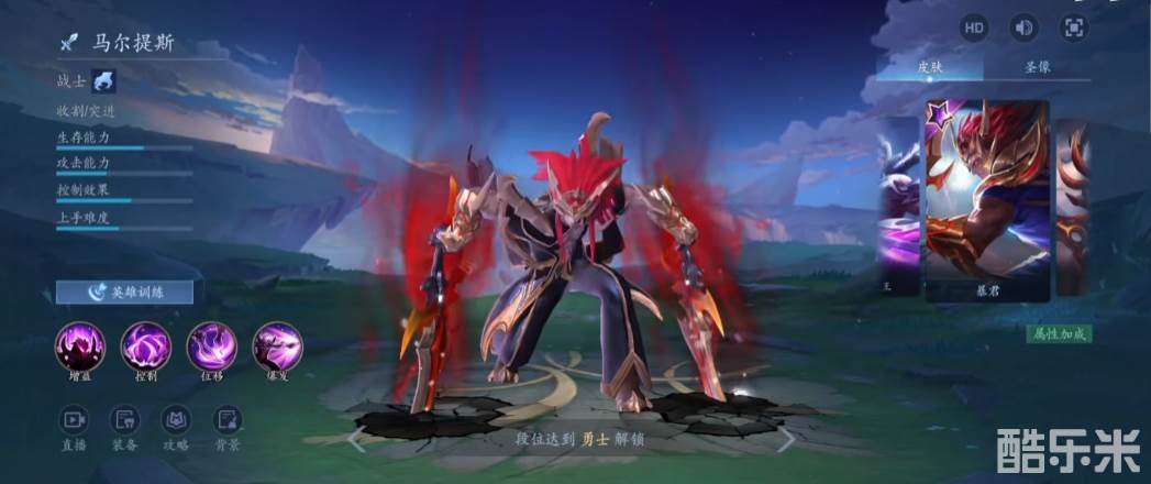 先来看被动技能“阿修罗之怒”,马尔提斯的招式每次使用之后都能增强自己的攻击速度。1技能“修罗场”,马尔提斯挥舞修罗之牙将前方扇形区域内的敌方单位都聚集到中间,1技能主要就是一个控制技能,可以将敌人直接聚拢,更方便集中攻击对手。
