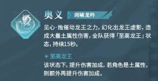奥义所赋予的“至高龙王”状态是见心烛提升队伍输出能力的最大亮点。该状态持续15秒,期间队伍整体的伤害将得到显著提升,若队友为土属性角色,则可获得额外的加成。因此,见心烛非常适合作为土属性队伍的核心辅助存在,其技能在协同方面表现尤为突出。