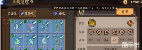 利于清理里面的功能,选择4星→全选→弃置,然后再去强,对于日常刷魂十的玩家来说挺方便清理的。