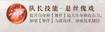 的队长技能“悬丝傀戏”。这个技能不仅能提升自身与舞伴的最大生命和攻击力,而且同样具备翻倍效果,如果舞伴是诸葛瑾的话。