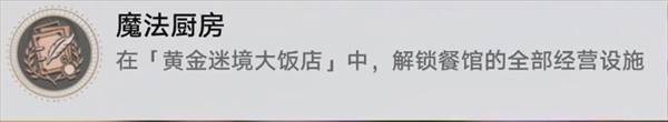 在经营管理处解锁餐馆的全部经营设施,即可获得成就【魔法厨房】;