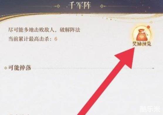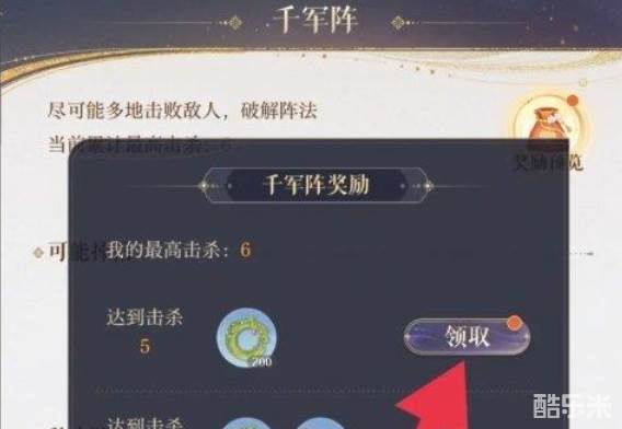 千军阵挑战奖励怎么领取呢?千军阵挑战奖励是游戏内的副本玩法,玩家们在解锁地宫的兰台玩法后,挑战千军阵击败敌人,破解阵法后即可领取奖励,且击杀的敌人越多,掉落的奖励物品越多,那么下面和酷乐米小编一起来看看吧