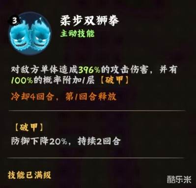 日向雏田的主动技柔步双狮拳,是精准破防的起手式,该技能作为雏田的核心输出手段,可以对单体目标造成396%的超高倍率伤害,这在游戏前期即可形成秒杀脆皮单位的威慑力,更重要的是100%附加破甲效果,直接降低目标20%防御持续2回合,这一机制打破了传统输出依赖单纯堆砌攻击力的模式,转而通过削弱敌方防御实现伤害最大化,例如在面对高防坦克型敌人时,一次成功的破甲足以令后续普攻或队友技能产生输出提升的效果,此外4回合的冷却周期与首回合必放的特性,要求玩家必须抢得先手优势。