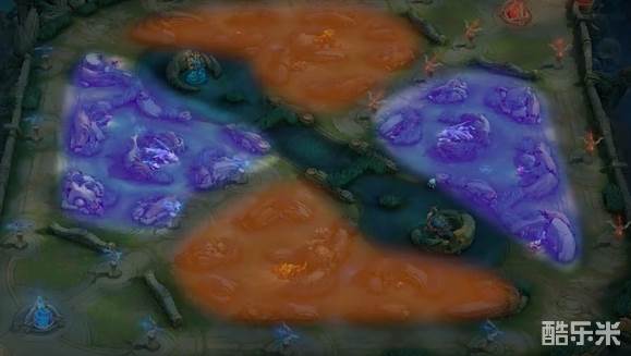 野区是地图上重要的战略区域,分为橙色和紫色两个区域,每个野区都有特定的增益效果,如橙色野区的橙buff可以提升英雄的攻击力,紫色野区的紫buff则能够增加英雄的回蓝效果。