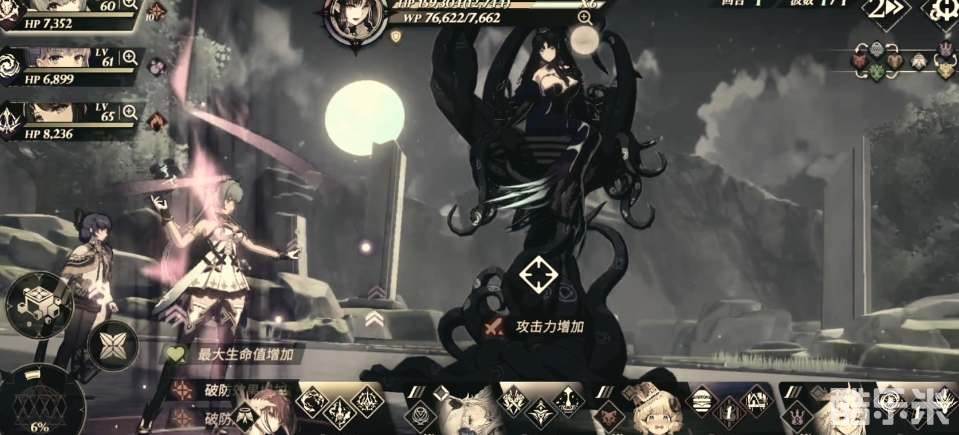 3、2技能 惑心低语:弱点系数100%,对全体敌人造成伤害,并使得敌方单位本场战斗永久降低5%攻击力;