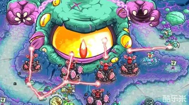 关卡boss全视之魔眼不需要直接对抗,只要消灭出现的敌人就能持续削减它的血量。boss会随机传送防御塔,被选中的塔和传送位置会出现红色魔法阵,玩家需要及时补防来应对这个机制。