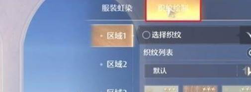 4、织纹绘制需要进入定制工坊,选择可以绘制织纹的服装,在染色界面的右侧色盘上方找到织纹绘制的选项。