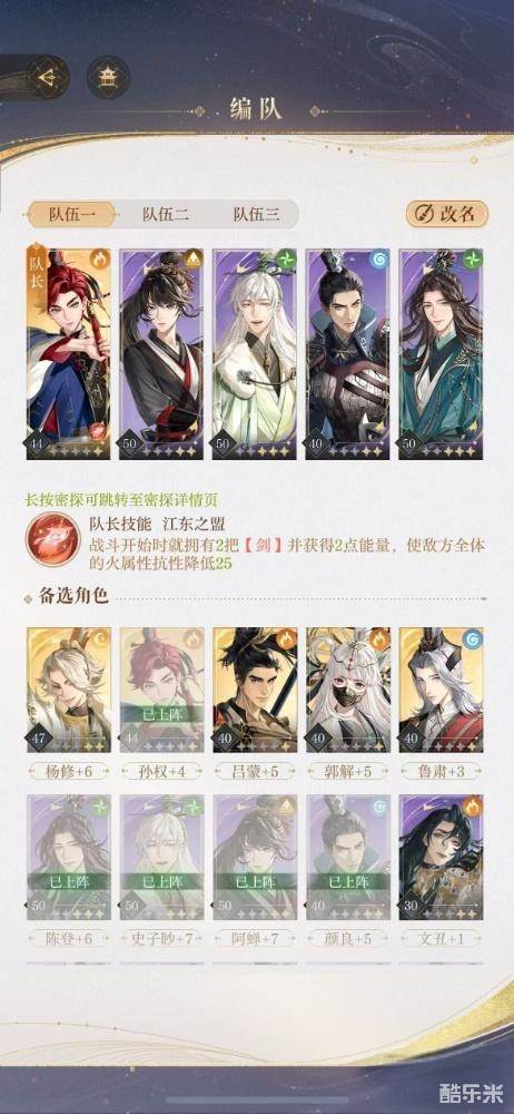 如鸢孙权怎么配队?游戏中玩家的每一个选择都关乎着剧情的走向,而且还是女扮男装的设定,非常带感。游戏中培养的角色叫密探,每次比赛可派出五名密探出征,那么角色孙权怎么配队可以发挥出最大的效果呢?感兴趣的小伙伴下面和酷乐米小编一起来看看吧
