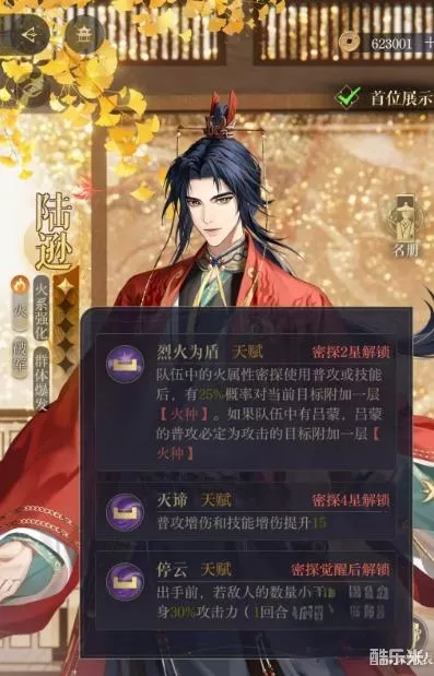 陆逊在游戏中有些关卡他是敌方大boss,实力强悍。得到这个角色的方法就是完成游戏任务积累兑换就好了,搭配好星石可以更快提升战力。天府+左辅星石是陆逊星石搭配的首选,使用可以帮助陆逊提高他的攻击力和他较为薄弱的防御能力。星石的获取方法非常简单,在游戏中点击“观星”,进入观星页面后会看到漫天繁星,非常美丽,有的星星开始闪烁时,就可以点击获取了。星石的等级不一,遇到不想要的星石也可以转售。