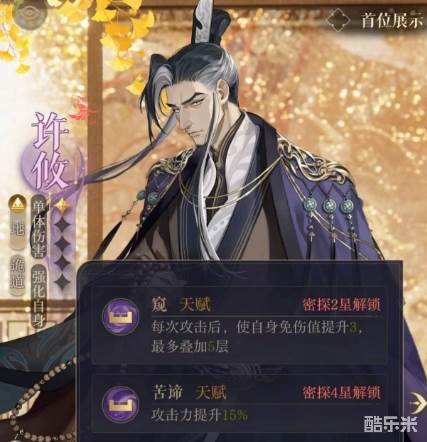 许攸在进行战斗的时候技能能够对敌人造成240%的攻击力伤害,如果敌人是在沉默的状态上伤害还会进行增加本身的攻击力伤害也是比较出色的。天赋技能是许攸的王牌,能够在进行多次攻击之后提升自己的免伤值,并且免伤值能叠加5层。