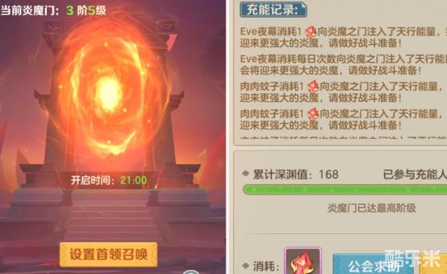 炎魔之门等级越高,炎魔越强大,击杀炎魔的奖励也就越丰厚,但是不要试图偷懒让其他工会成员充能自己不去充,因为你充能的次数越多,击杀炎魔拿到的奖励也就越多,所以不要去偷懒耍滑头,这跟你自身资源利益息息相关。