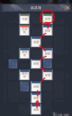 1、马场:暴躁马夫-前进-穿过木匣-前进-穿过木匣-前进-穿过木匣-前进-前进-演武场