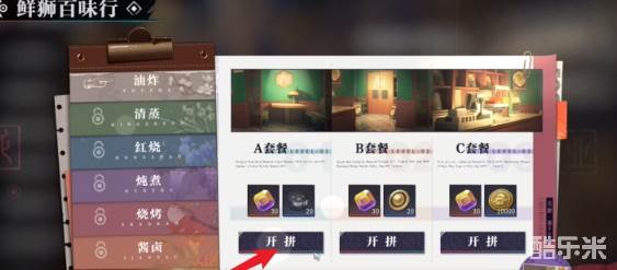 2、进入【油炸】界面后点击右侧的【开拼】,接着完成三个套餐的拼图即可领取对应的奖励。