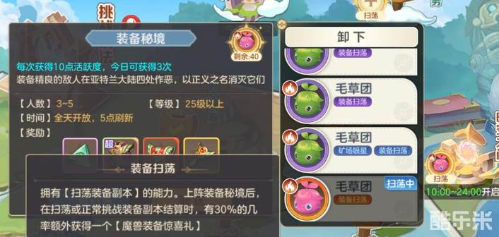 放上对应位置后,每天五点刷新活动后点扫荡就可以一键完成并获取任务奖励了。
