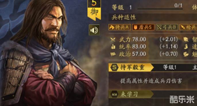 于禁的自带战法持军毅重虽然发动几率只有35%,但效果绝对值得期待。这个战法能让咱们下次受到的兵刃伤害提高,但换来的是3回合56点武力值加成,还能对敌军两人造成184%伤害率的群攻,这输出能力简直不要太强。不过这个战法发动几率确实有点低,可以考虑搭配白眉这类提升发动几率的战法来增强稳定性。下面和酷乐米小编一起来看看吧